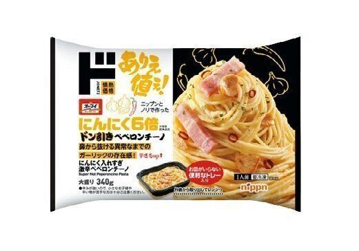 にんにくが6倍。人気で品薄店続出「ありえ値ぇ情熱価格大盛 にんにく入れすぎ激辛ペペロンチーノ」(340g)¥204