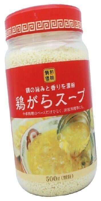 500g入りで、小袋を買うよりも断然コスパ◎。「情熱価格 鶏ガラスープ」(ボトル)