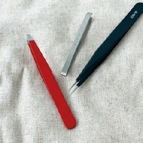 眉のお手入れには、もっぱら写真の毛抜きを愛用。先が細くなっているので使いやすい♪
