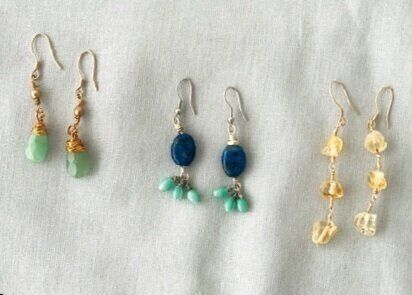 半貴石好きのM崎が、針金とパーツを組み合わせて作成。片方20分程度で完成。