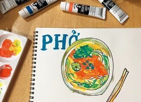 フォーを写真に撮ってからスケッチ。じっくり観察しているうちに無の境地へ。