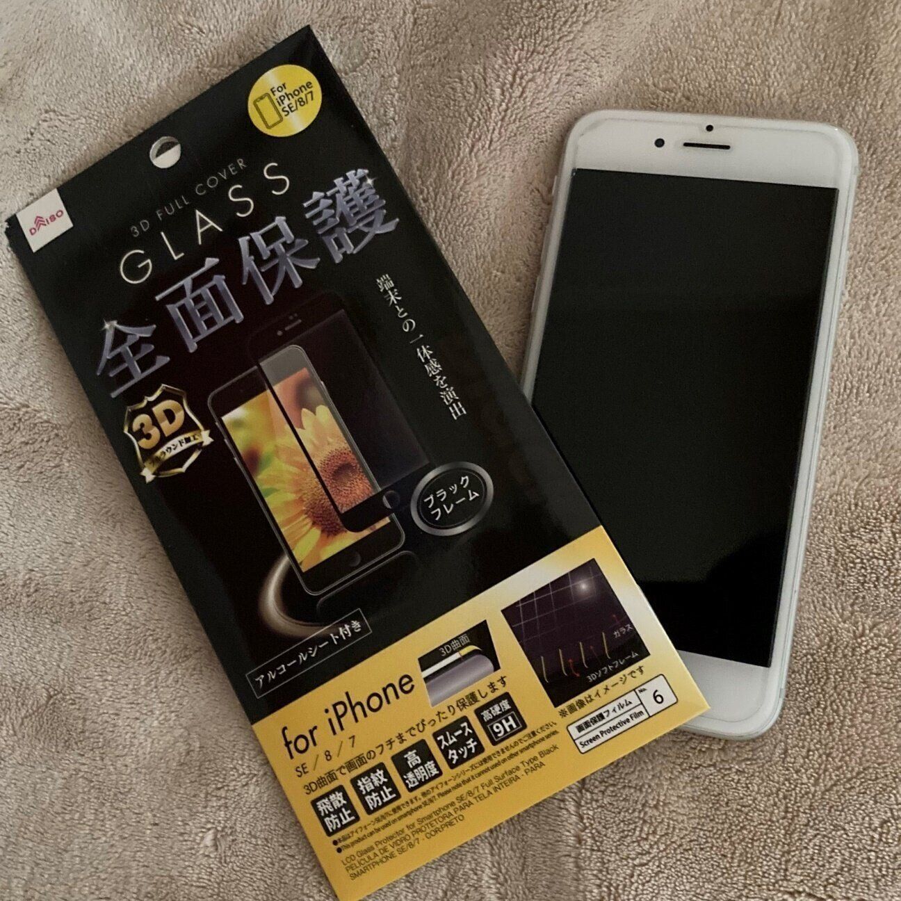 使っていると、滑りが悪くなったり傷がついたりするので、半年くらいで張り替えるようにしていますが、『全面保護3Dガラス』(110円)は定番商品化したようで、毎回同じものを買っています。