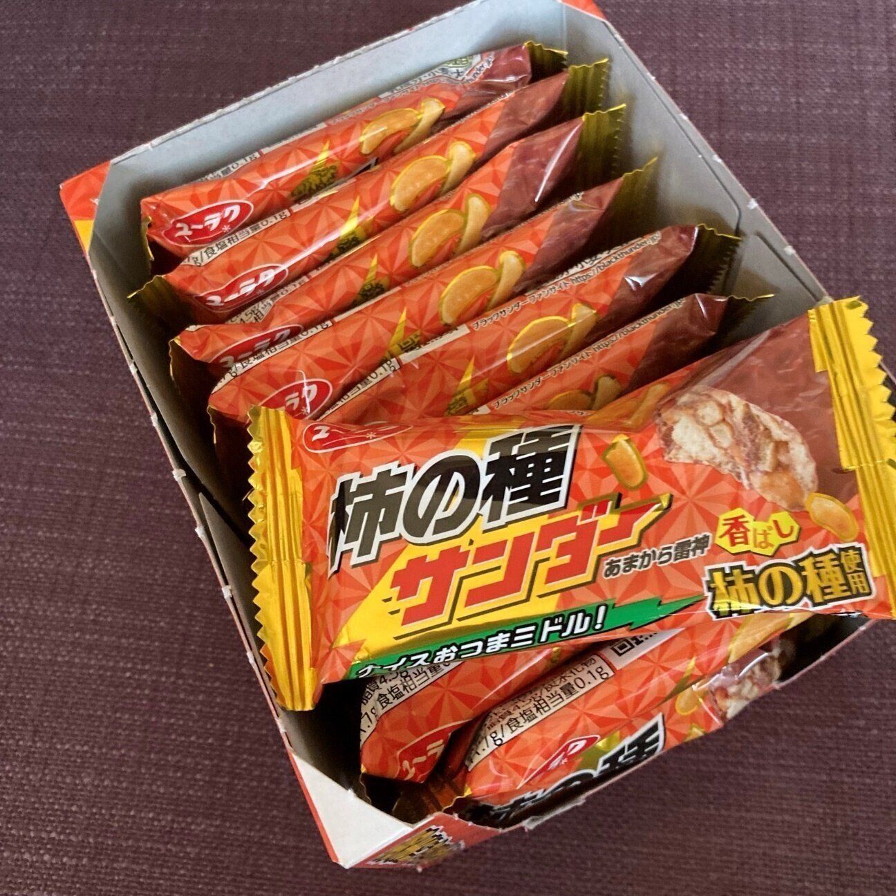 毎年楽しみにしている、秋限定のチョコスナック『柿の種サンダー』が、今年も発売されました。チョコスナック『ブラックサンダー』と、大人のスナック『柿の種』がコラボした商品です。