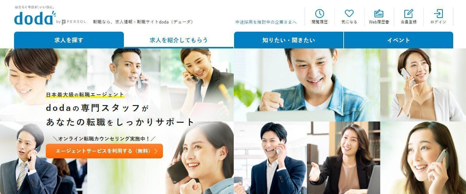 『doda』は、パーソルキャリア株式会社が運営する日本最大級の転職エージェントです。