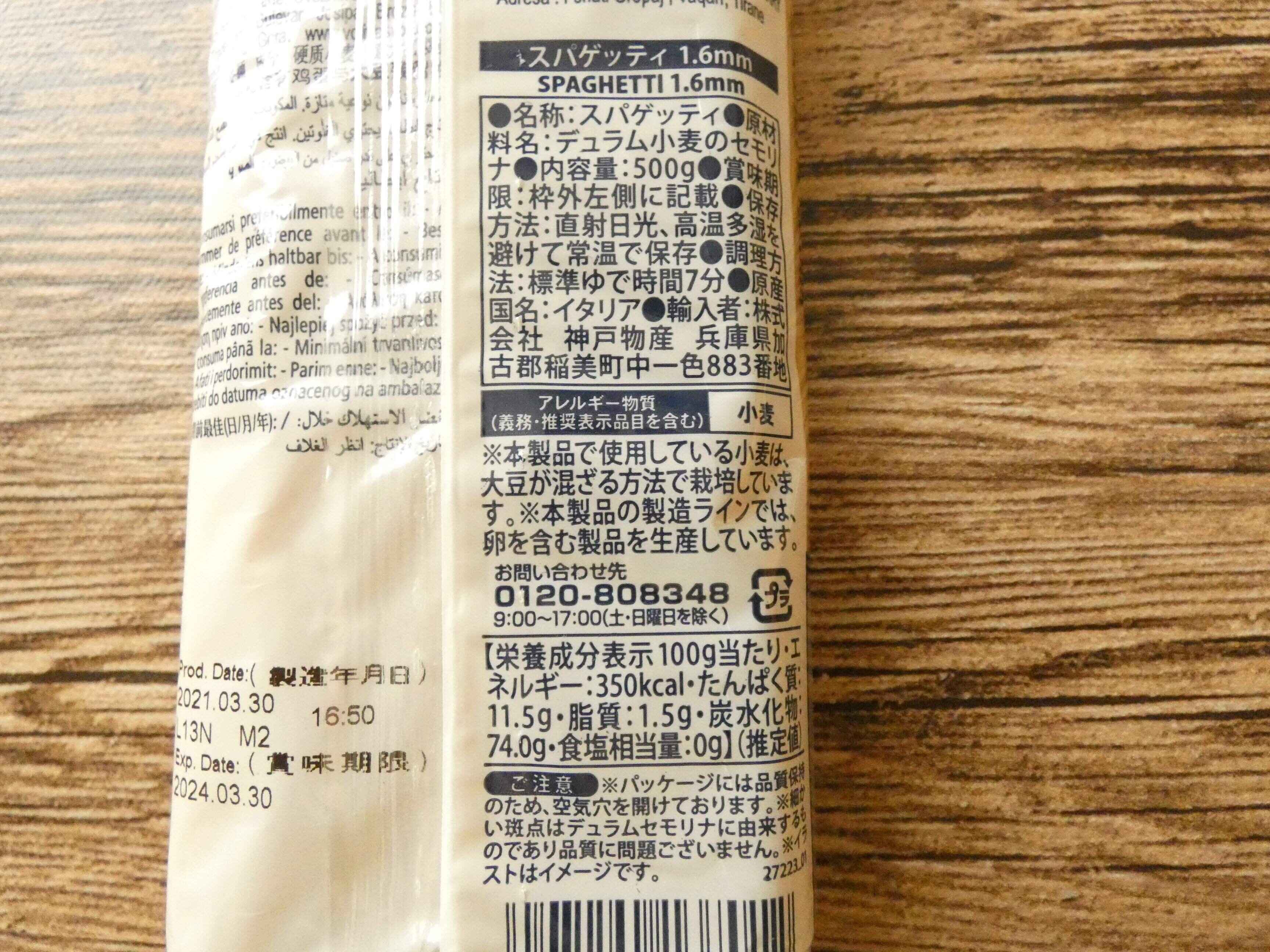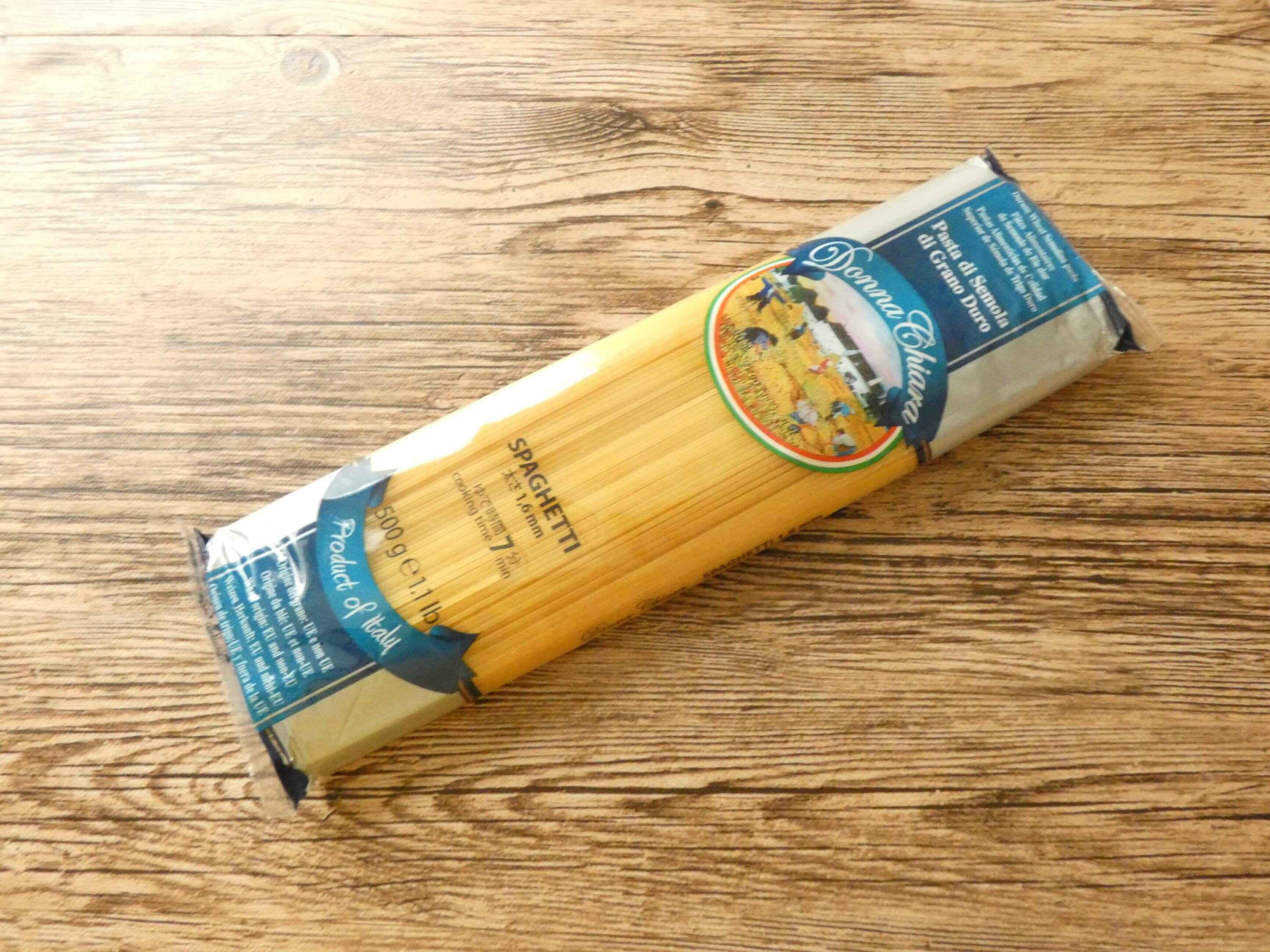 業務スーパー「スパゲッティ(DONNA CHIARA)」は、イタリア直輸入の商品で500g入り91円。たっぷり500g入って100円以下は驚きの高コスパです。