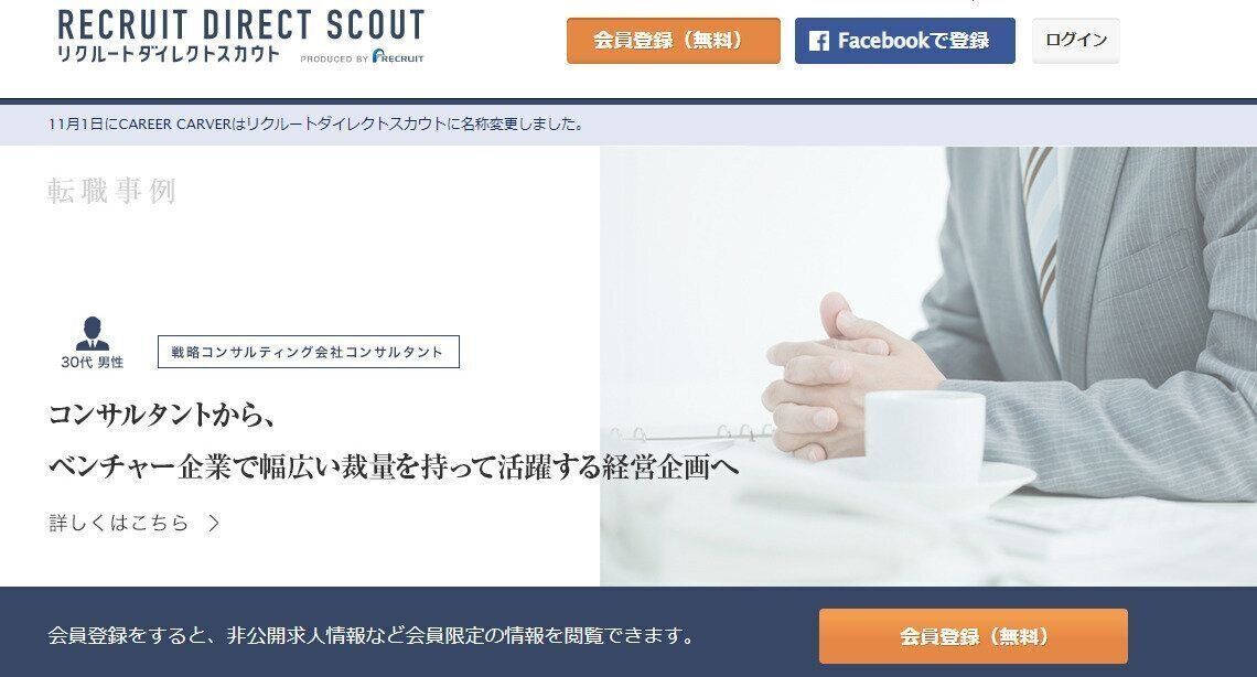 【1】転職エージェント名:リクルートダイレクトスカウト 【2】運営会社:(株)リクルート 【3】求人数:約10万件(公開求人数数) 【4】特徴:ハイクラス向けの高年収求人が豊富