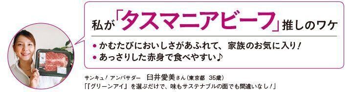 「1974年に強い想いを実現するために広大な大自然を有するタスマニア島にわたりました。成長ホルモン剤、抗生物質は使用せず、牛へのストレスやケガを減らす努力や環境への配慮をしながら育てています。安全・安心なおいしい牛肉を召し上がってください」(イオントップバリュ 畜産商品部 永井宏正さん)