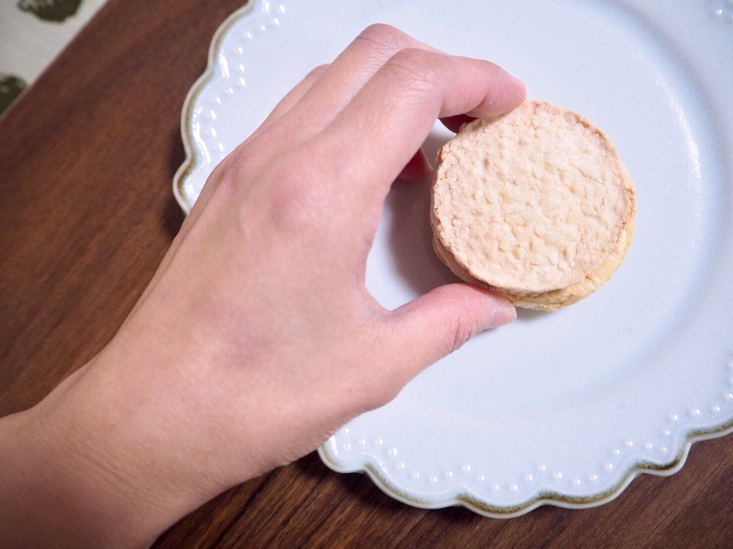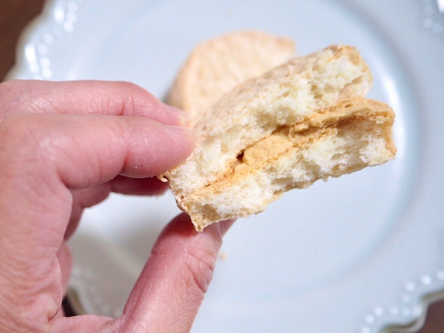 正体はミルクキャラメルクリームを真ん中に挟んだダッワーズなのですが、香料・乳化剤・膨脹剤などの食品添加物が使われておらず、お子さまにも安心してあげられるおやつです。