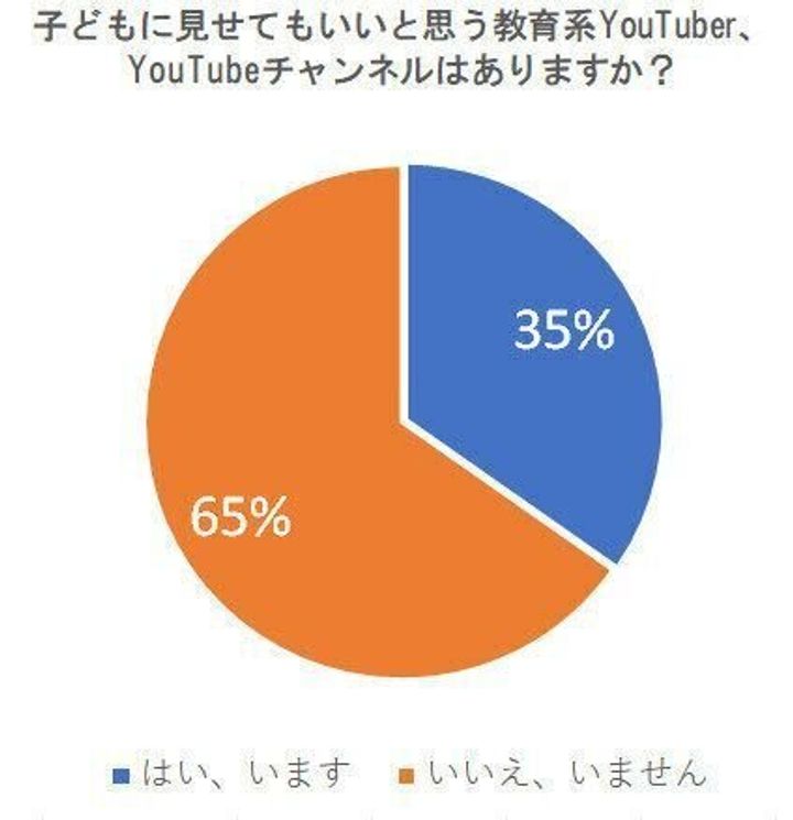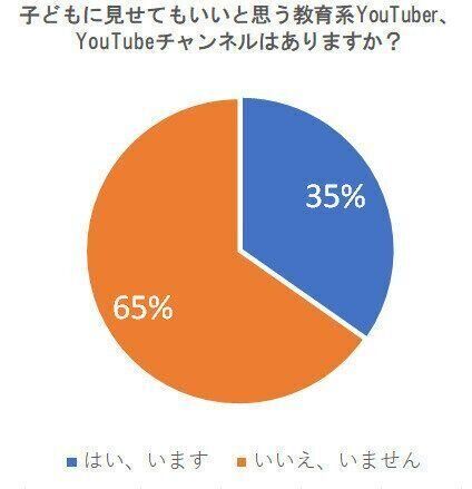 「子どもに見せてもいいと思う教育系YouTuber、YouTubeチャンネルはありますか?」という質問に対して、このような結果が。65%の人たちが子どもに見せてもいいというYouTubeチャンネルがあるようです。