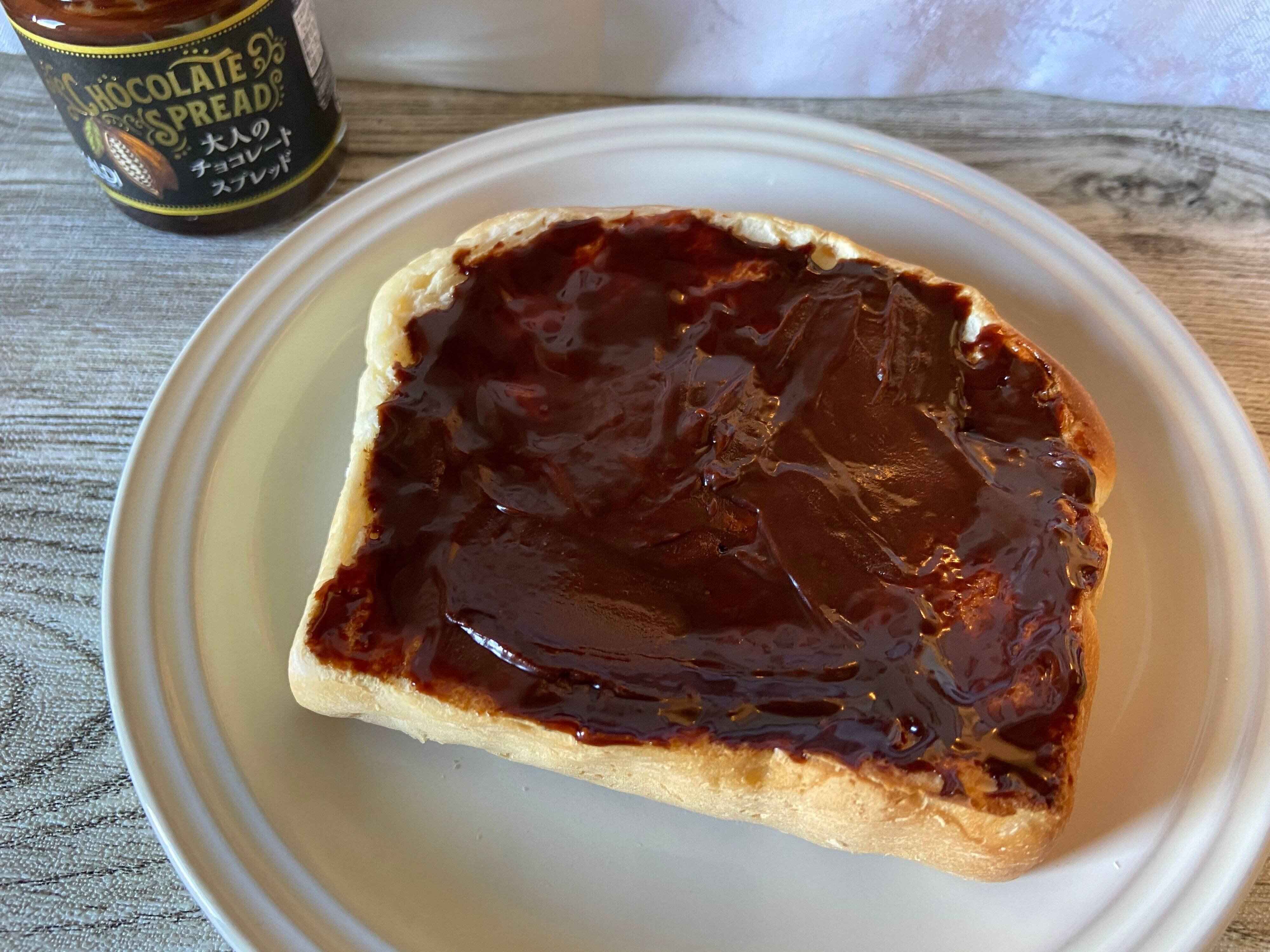 トーストにのせてみたら、熱で温まったチョコレートスプレッドが一気になめらかになり、ぬりやすくなりました。艶も出て、見た目もおいしそう。