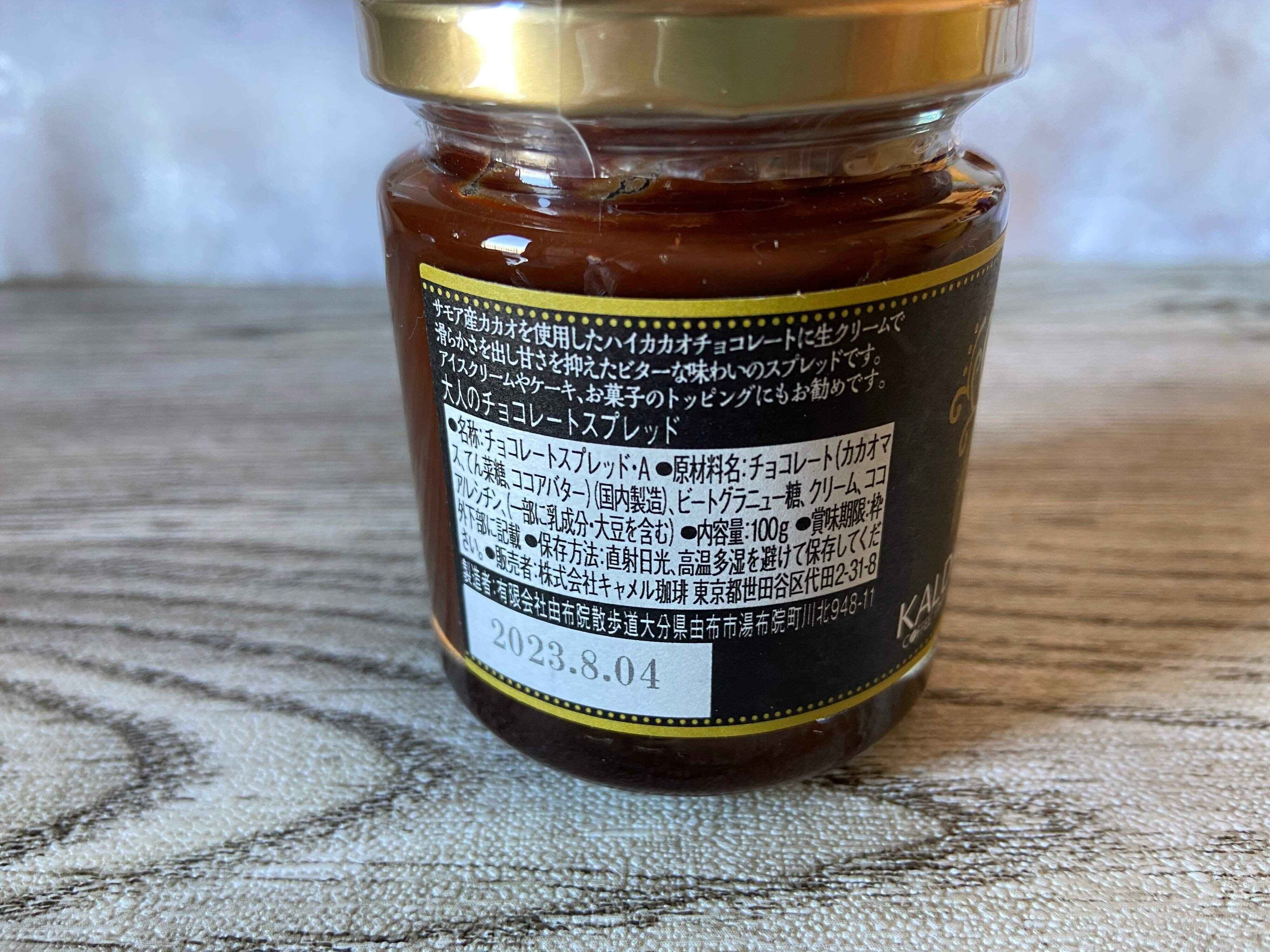 カルディに数あるパンのおとも商品のなかから「何度でも買いたい!」と思うほどとくにおすすめなのがこちら「大人のチョコレートスプレッド」(購入時:604円)。