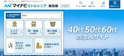 『マイナビミドルシニア』は、大手人材サービス会社「マイナビ」が運営する40・50・60代専門の求人サイトです。