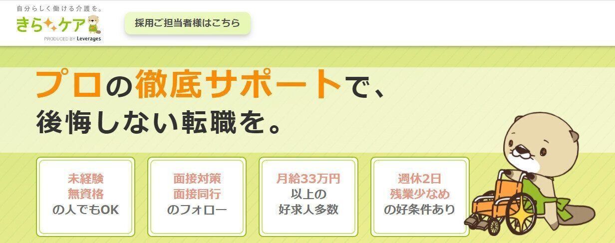 『きらケア』は、介護職スタッフ満足度No1の転職サイトです。