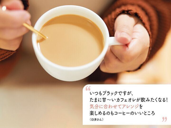 豆の個性を生かし、それぞれに適した焙煎を行っている「ネスカフェ ゴールドブレンド」。徹底した時間管理と温度管理を経て、豆の特徴ごとに50段階以上の焙煎度合いを調整しているそう。「新製法の技術の高さがうかがえる、上質な味と香り。コーヒー単品でも、食事のお供にも合いますね」(小西さん)