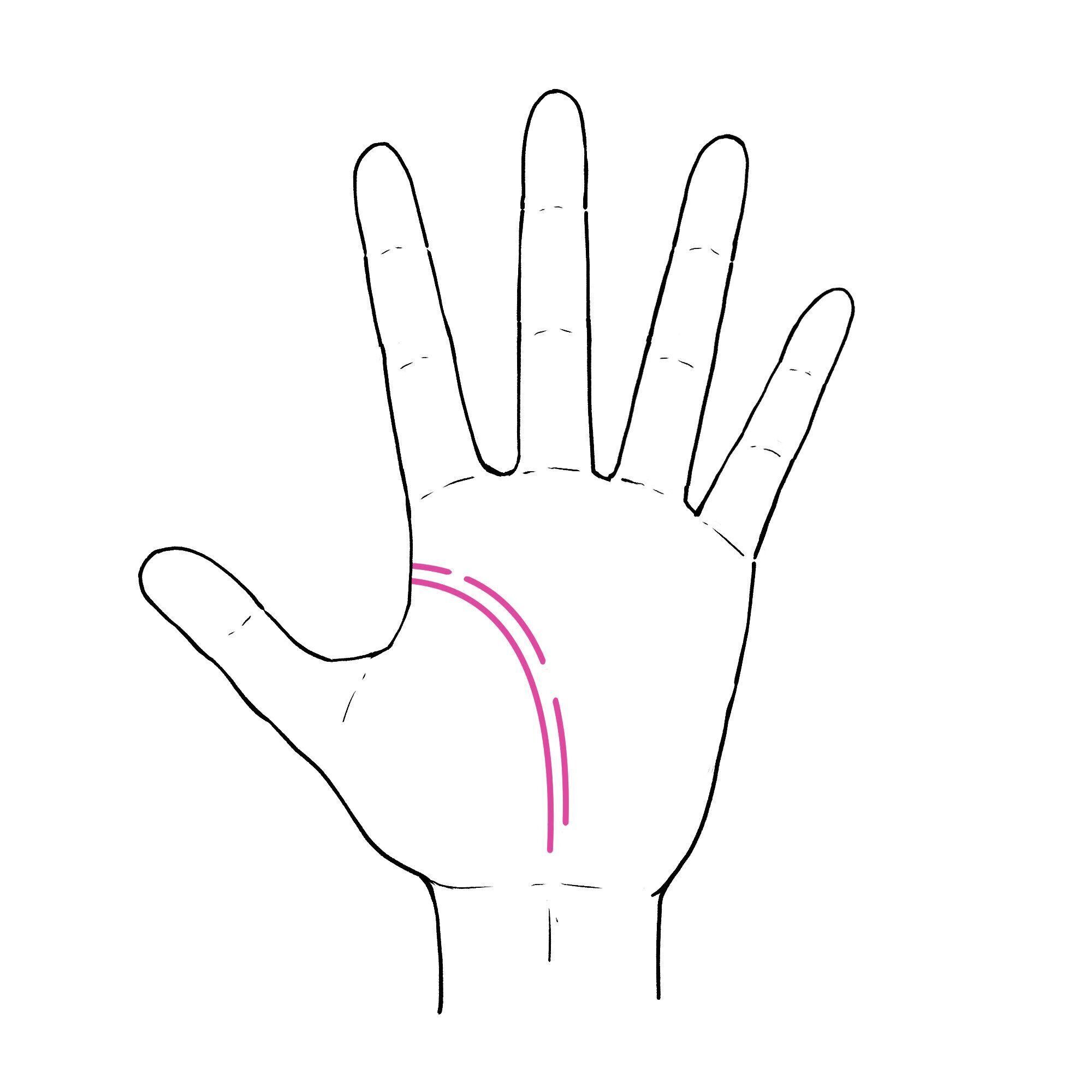 生命線が2本ある、いわゆる二重生命線や、生命線の隣にサポートするような線があったら、体が丈夫で体力があり、エネルギッシュな人。運動能力も高いでしょう。