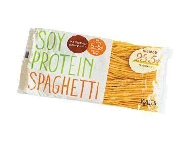 デュラム小麦をベースに、大豆たんぱく質を配合。1食当たり23 . 5gのたんぱく質がとれる。「ソイプロテイン 生スパゲッティ」(120g)¥129
