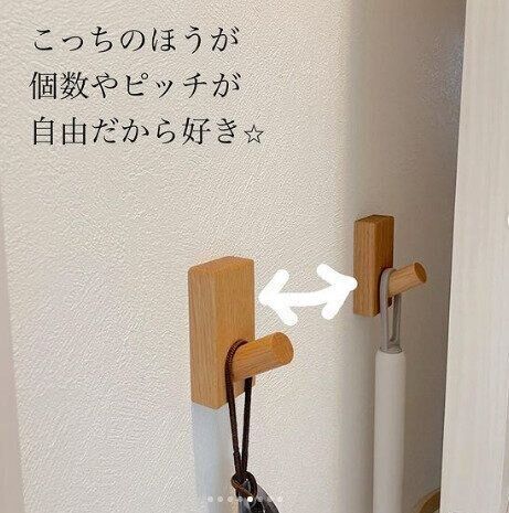 「壁に付けられる家具フック」です。ピンタイプで石膏の壁にかんたんに取りつけることができ、帽子やコートをかけるアイテムとしても人気ですよね。ナチュラルな素材でインテリアにもしっくりとなじみます。