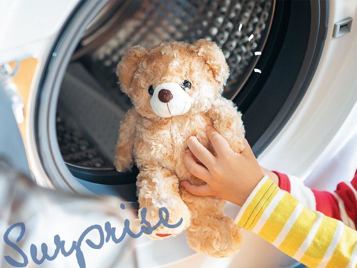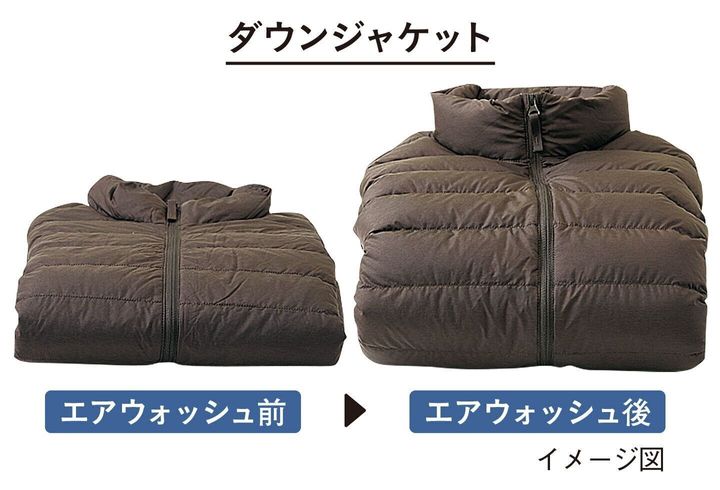 制服やダウン、ぬいぐるみなど、洗いにくいものは「エアウォッシュ」におまかせ! 温風ミストとUVライトの力で除菌※1・消臭※2。シワも伸ばし、ふんわりキレイに仕上がります。「ぬいぐるみの汚れって、ついつい見て見ないふりしていたけど、これなら手軽に洗えそう」(高田さん)