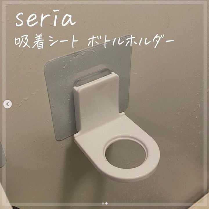 セリアの吸着シートボトルホルダーは、吸着シートを使って好きな場所にボトルホルダーを設置できる便利アイテムです。使い方も簡単で、吸着シートを貼り付けてホルダーをセットするだけ。お掃除ボトルをひっかけるのにも便利で、アイデア次第で使い方の幅も広がります。
