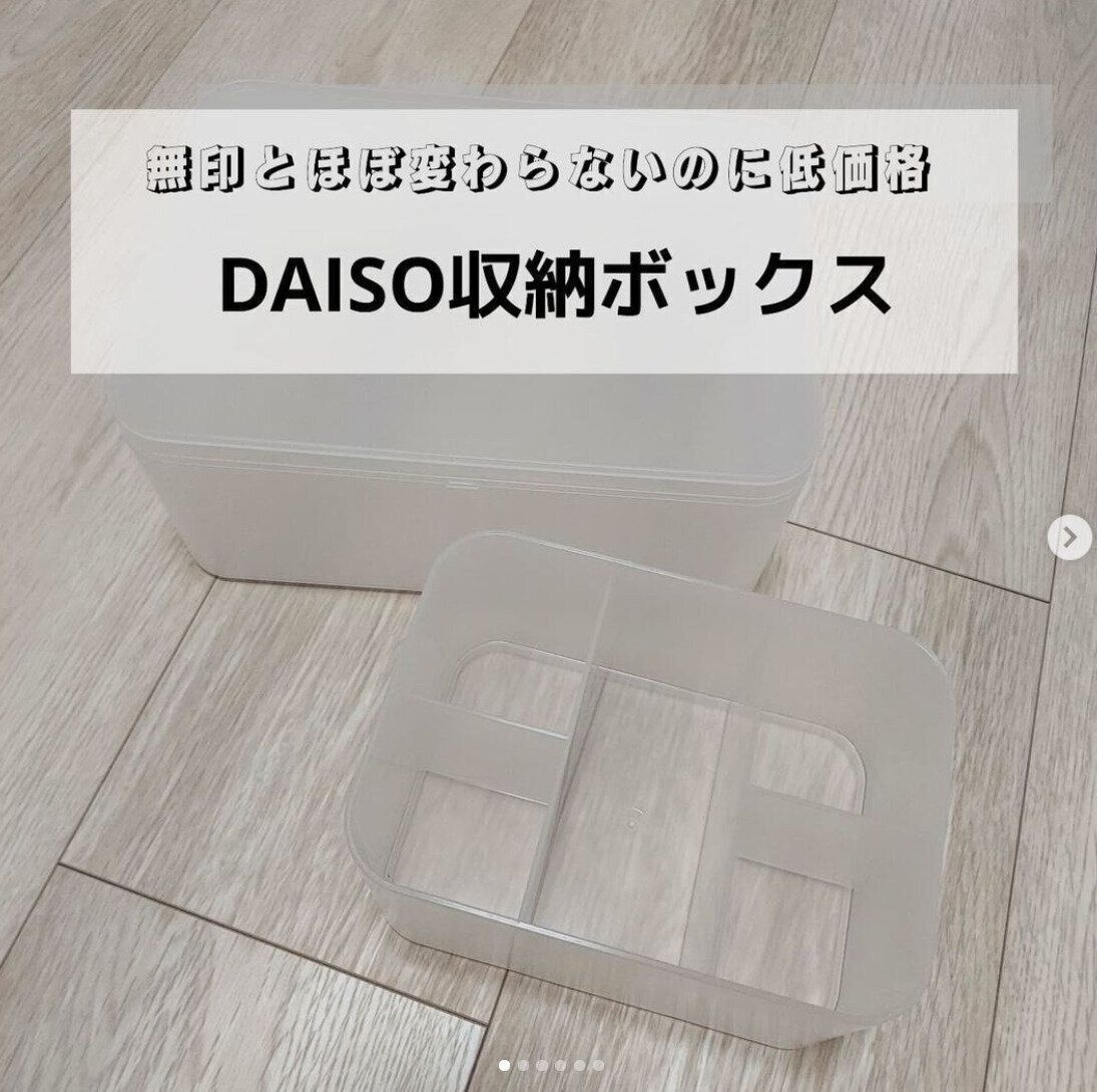 ダイソーにはシンプル&プチプラのコスパ◎収納ボックスがたくさん。フタつきタイプと仕切りタイプの収納ボックスを組み合わせれば、重ねて収納も可能です。こちらのボックスはメイクボックスや洗面所まわりのアイテム収納にもぴったり。たっぷり入って見た目もスッキリします。