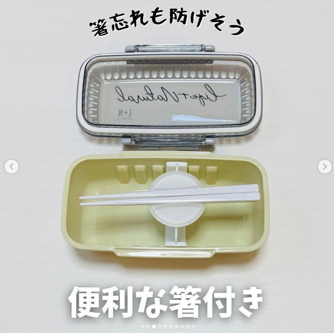 シンプル&おしゃれなデザインと、高い機能性で話題のランチボックス。ダイソーの330円商品です。箸置きつきでお箸を忘れる心配もなし。ソースやドレッシングなどをインできる入れものもついていて、個別に持ち歩かなくてよいので便利です。仕切りは移動可能で、ドーム型なのでおかずもつぶれにくいという素敵アイテムです。
