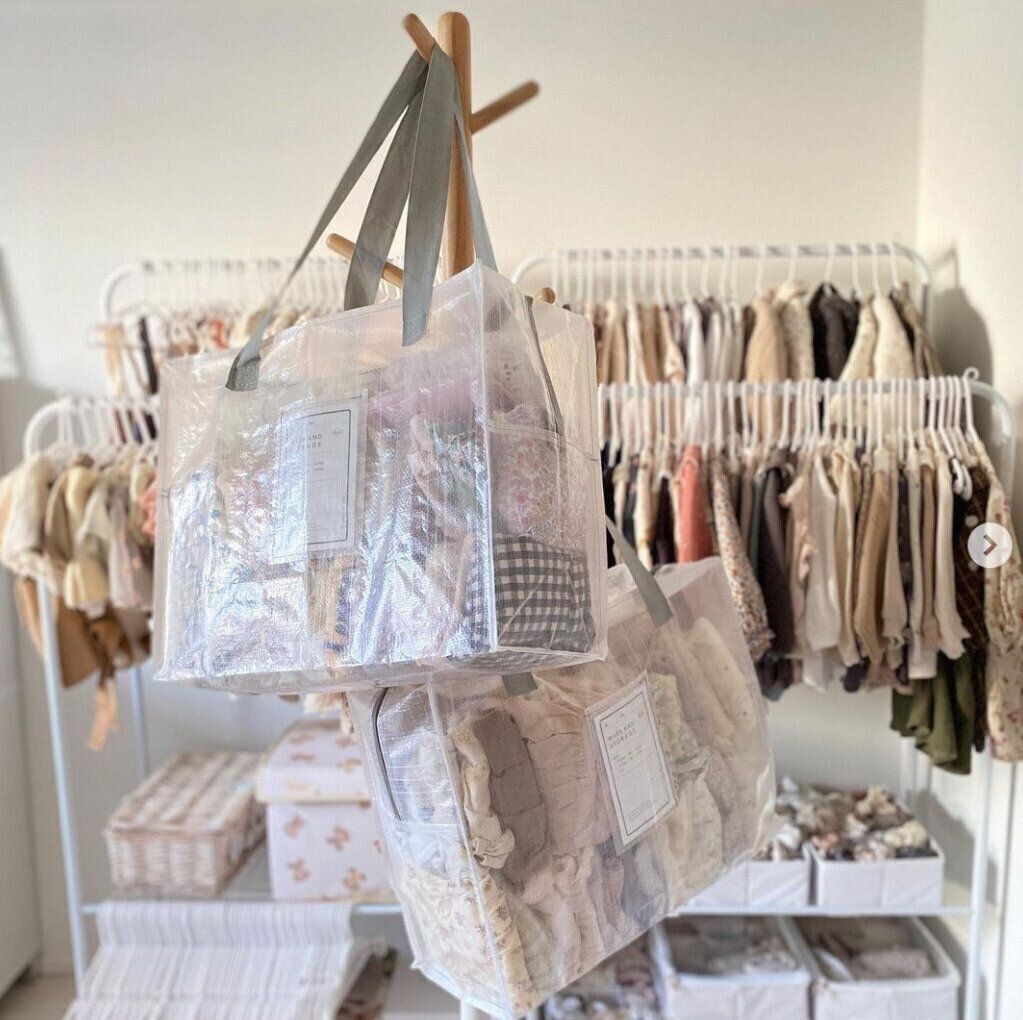 3COINSのクリアボックスバッグは、お洋服をたっぷり収納&自立したまま使える人気収納アイテムです。こちらのバッグはLサイズで、約30.5L収納できます。水や汚れに強い生地で、半透明素材なので見分けやすいのがポイント。使わないときはコンパクトにたたんで収納可能です。