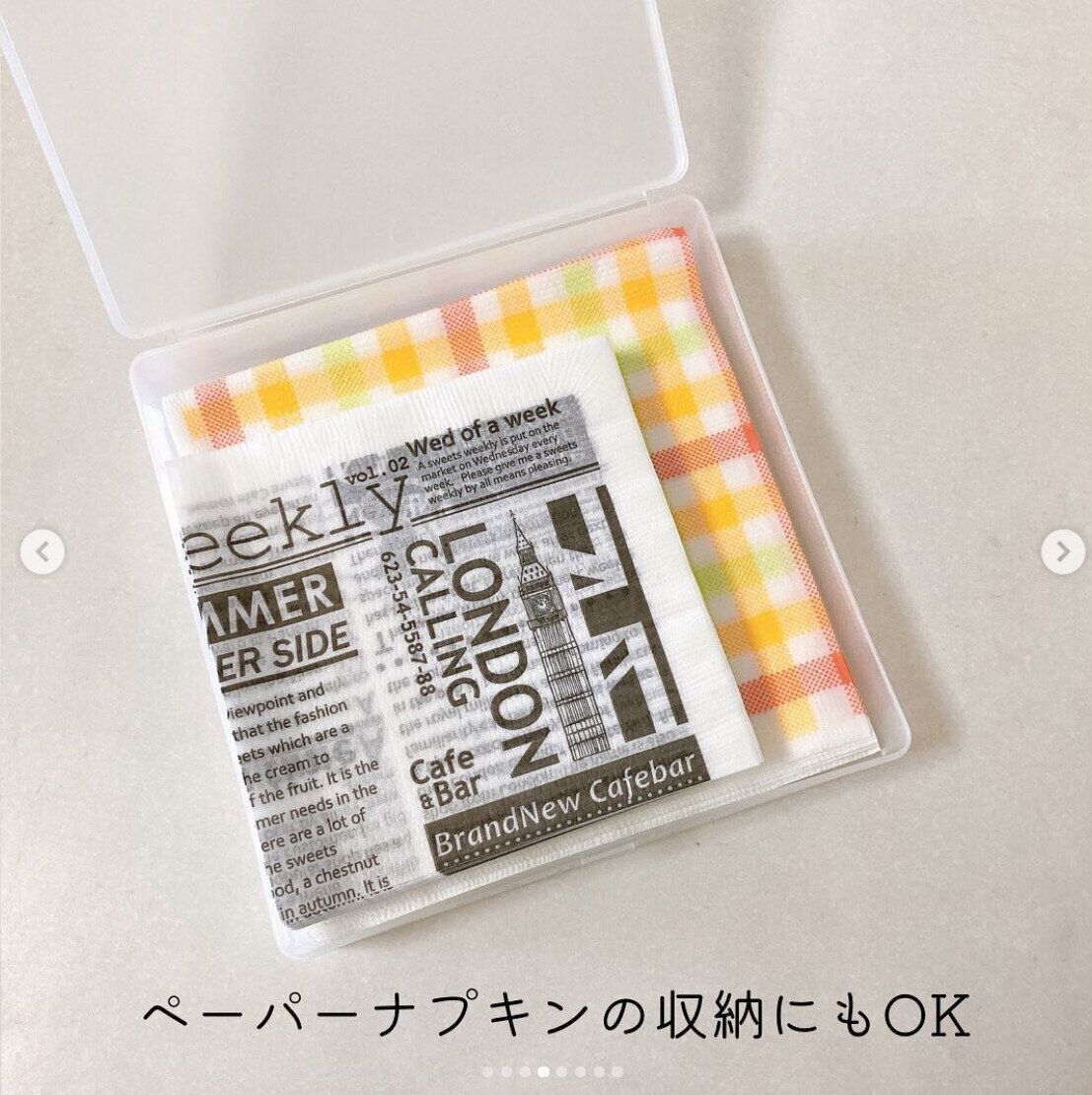 ペーパーナプキン、カラーペン、折り紙の収納など、さまざまな用途に合わせて使い分けられるシンプルなスクエアケース。立てて収納可能なので、ケースをまとめ買いして並べて収納されているかたも。見た目がシンプルでスッキリしているので、より整った印象になります。