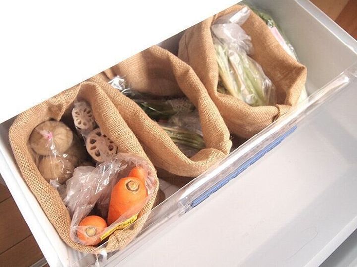 野菜室の収納でお困りの皆さま。ジュート野菜保存袋は350円です!お安い!ぜひとも一度、騙されたと思ってお試しくださいませ!