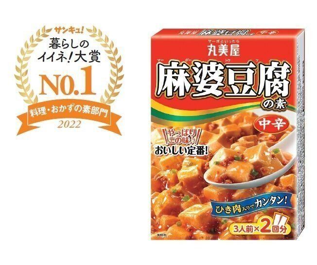 丸美屋が発売以来こだわり続けてきた鶏ガラスープのうまみと豆板醤の辛みが味の決め手。食欲をそそる豊かな香りが広がる。「麻婆豆腐の素〈中辛〉」(3人前×2回分)¥254/丸美屋食品
