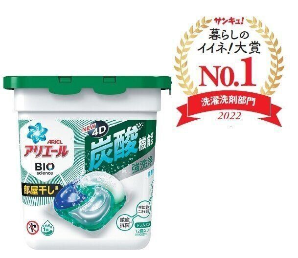 洗浄成分の働きをブーストする炭酸機能※2を搭載した、新生ジェルボール。沈着ジミも徹底洗浄※3。小型化したパッケージも◎。(部屋干し用・12個入り)オープン価格/P&Gジャパン