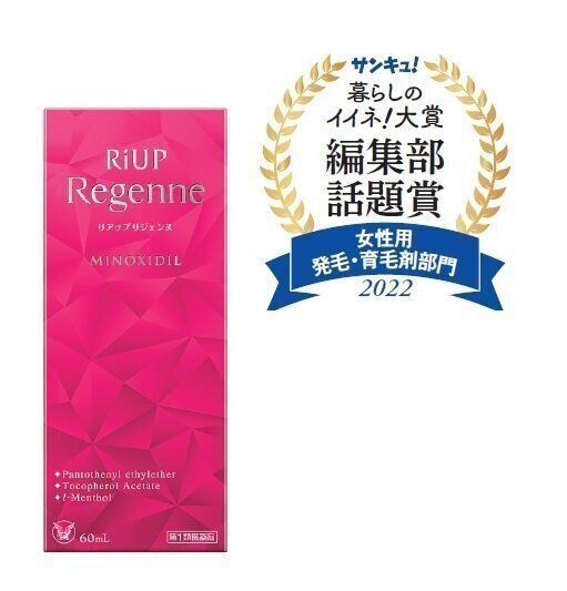 女性のための発毛エッセンス。〈第1類医薬品〉【販売名】リアップリジェンヌ【効能・効果】壮年性脱毛症における発毛、育毛および脱毛(抜け毛)の進行予防。(60ml)¥5,763/大正製薬