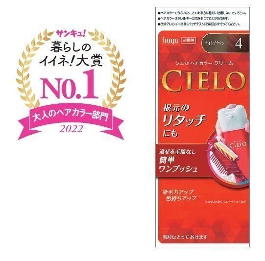 混ぜる手間なしの簡単ワンプッシュで使える。生え際も根元も塗りやすいくしを付属。「シエロ ヘアカラーEXクリーム 4 ライトブラウン」〈医薬部外品〉オープン価格/ホーユー