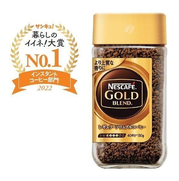 コーヒー豆の特長を最大限に引き出す独自の「スターロースティング製法」で、上質な香りと、すっきりとした後味を実現。「ネスカフェ ゴールドブレンド 80g」¥1,031/ネスレ日本