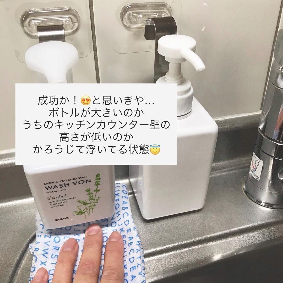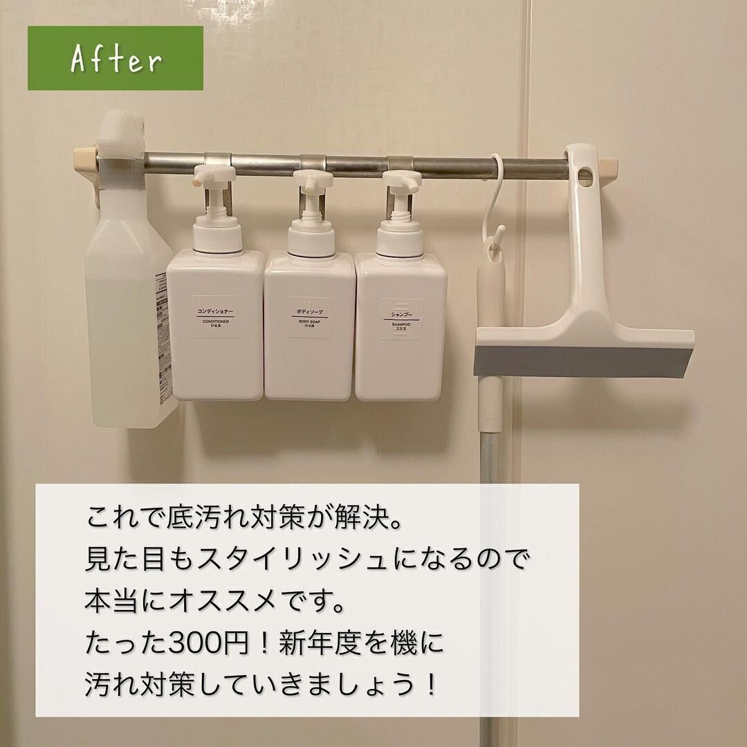ポンプボトルの口に装着し、フックをバーにかけて使うステンレスボトルハンギングフック。バスルームの収納としてはすでに定番になりつつありますね。容器の底を浮かせて吊るすので、衛生的できれい好きのかたにはマストの収納アイデアです。