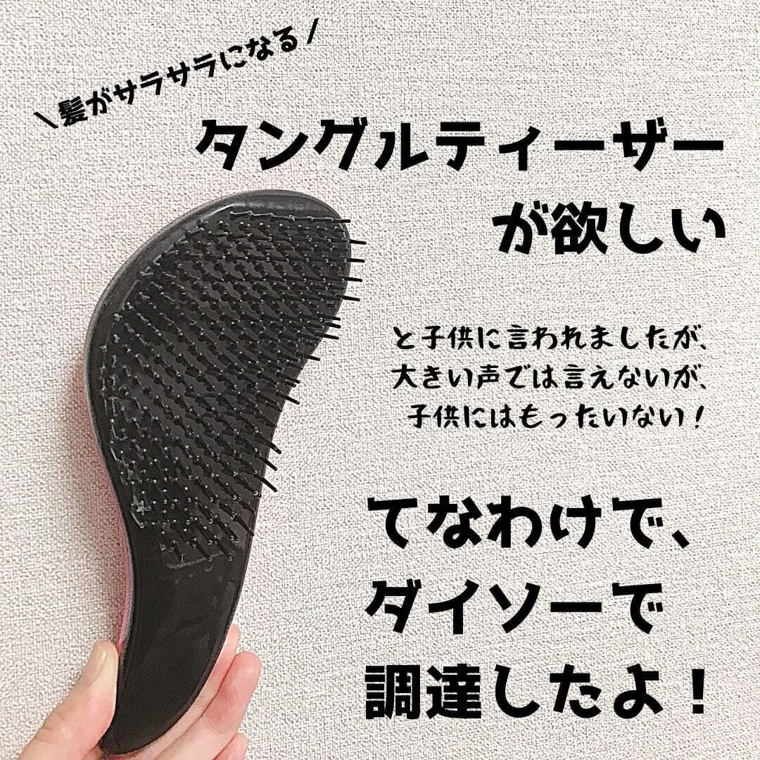 木製ピンヘッドのパドルブラシがダイソーなら220円で買えると、ひそかに人気の商品です。柄の部分まで木製なので洗面台においても安っぽくなくおしゃれですね。空気穴つきのクッションパッドなので、頭皮へのあたりがやさしいのがポイントです。頭皮ケアの基本とも言えるブラッシングに使いたい一品です。