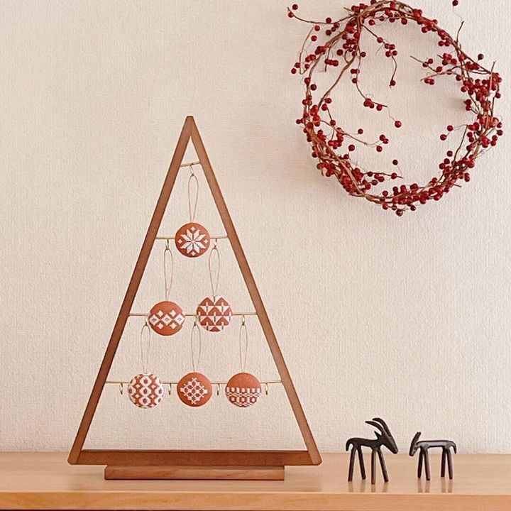 オーナメントツリー(ウッドトライアングル ブラウン)は、クリスマス用のオブジェとして大人気。お好みのオーナメントを10個吊り下げて飾ることができる仕様です。クリスマスが終わっても、季節のモチーフを取り入れたガーランドを飾って、飾り棚に置いてもおしゃれですね。木のぬくもりが感じられる素材とシンプルなデザインがどんなインテリアにもマッチします。