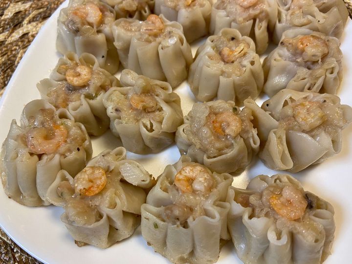 調理方法はレンジ加熱か、蒸し器で加熱。我が家は蒸し器を持っていないのでフライパンに少量の水を張り、白菜を1枚敷いて焼売をのせてフタをして加熱、蒸し焼きにしています。