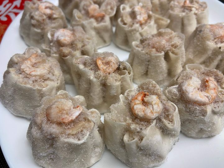 えびがトッピングされた冷凍のシュウマイが16個入り。