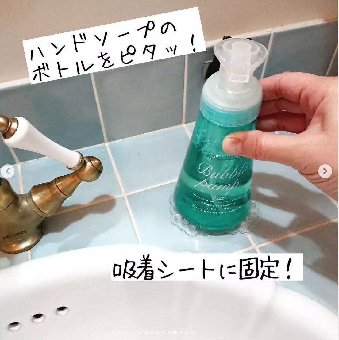 両面吸盤でピタッと物を固定してくれる、その名もピタッ!と吸いつく!吸着シート。小さな吸盤がたくさんついていて、水はけのいい水抜き穴つきなのでお風呂場などでも使えます。シートの吸着&取り外しは簡単で、洗面まわりのアイテムの落下防止にも重宝しますよ。