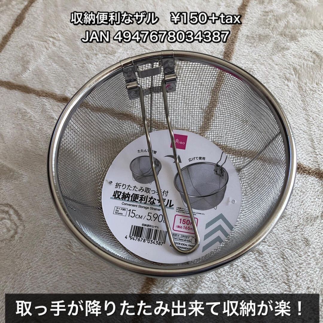 麺や食材の湯切りに重宝する持ち手のついたザル。便利だけどかさばるのが難点ですよね。ダイソーの「収納便利なザル」は、取っ手が内側に折りたためる仕様なので、鍋やボウルに重ねて収納できます。