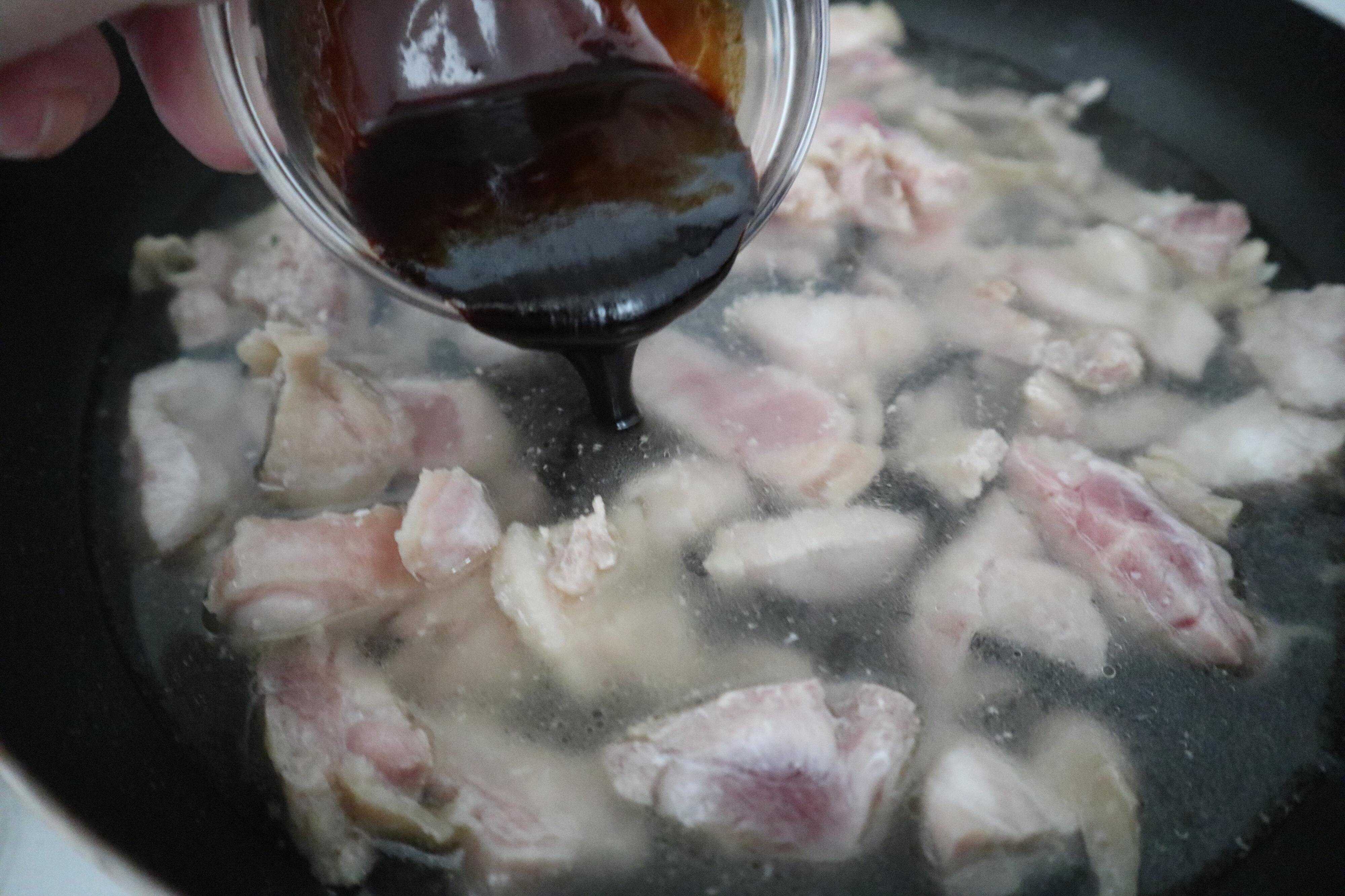 2.1に水とルーロー飯の素を加えて、弱火で25分煮る。