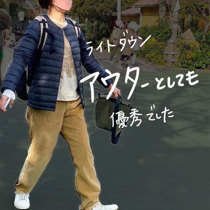 同じくサンキュ!アンバサダーの@_cocoti_さんは、休日のお出かけに「ヒートクロス ヘキサゴンダウン ライトダウン」を着て行ったそう。