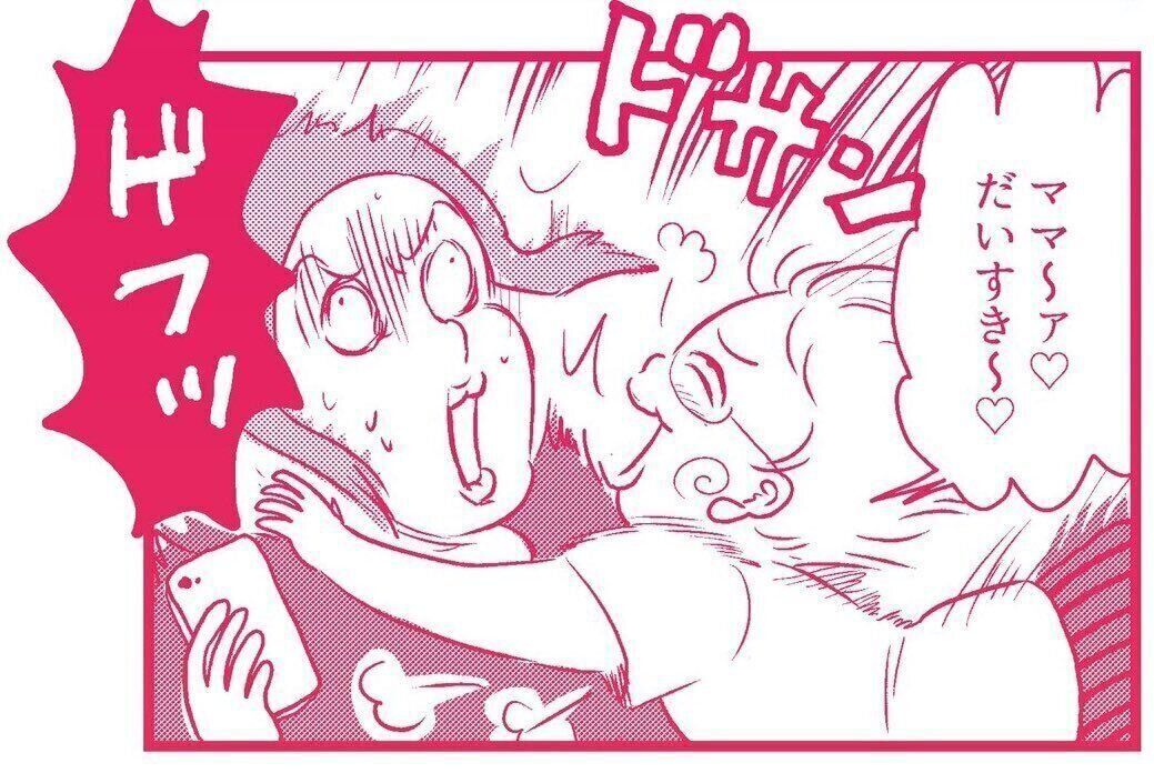 「でも」……そこで、ママの反撃開始!息子さんに「ママもォ〜だいすきだいすきだいすき」と、愛情たっぷりの頬ずりを繰り返したのだそうです。