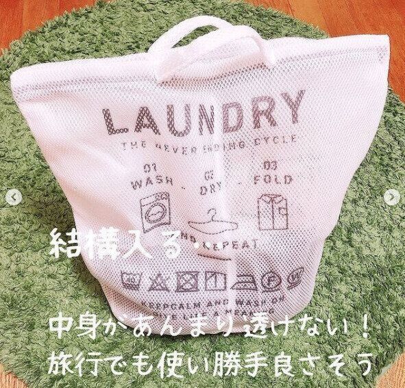 洗面所が狭くて、洗濯かごを置くスペースが足りないと困っているかたにおすすめのものが「ランドリーバッグ」になります。おしゃれなデザインで、かつ、透けにくいため、洗濯ものを入れて、ちょっとかけておいてもあまり気になりません。また、洗濯ものがたまったらそのまま洗濯機にINして洗えるでしょう。時短も叶えてくれて、見た目もかわいい3COINSらしい便利アイテムです。