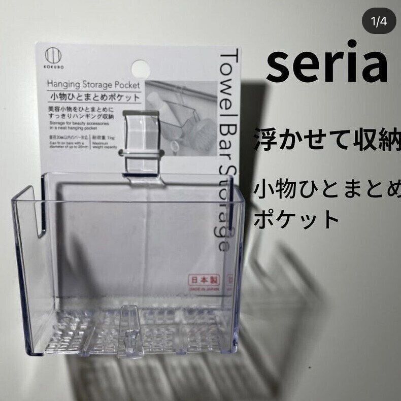 いろいろな浮かせる収納アイテムが販売されるなか、セリアの「小物ひとまとめポケット」は、スタイリッシュに浮かせる収納が叶う!と評判です。クリアケースで見た目もよく、ケース底には穴が開いているため通気性も◎。全面にはフックがついているので、いろいろなものを引っかけることができて便利です。湿気や水気の多いお風呂場でも、気持ちよく使うことができますね。