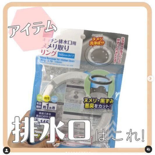 ヌメヌメしたキッチンの排水溝って、掃除するのはイヤですよね。ダイソーの「キッチン排水溝用 ヌメリ取りリング」110円は、ヌメヌメする前にそれを予防できちゃうすぐれもの。