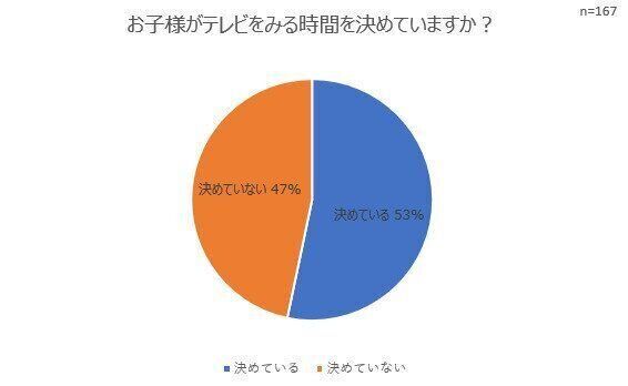 ついだらだら長時間見てしまいがちなテレビ。テレビの視聴ルールはどう決めているのでしょうか? アンケートの回答では、テレビを見る時間を決めている家庭とそうでない家庭は、ほぼ半々のようです。