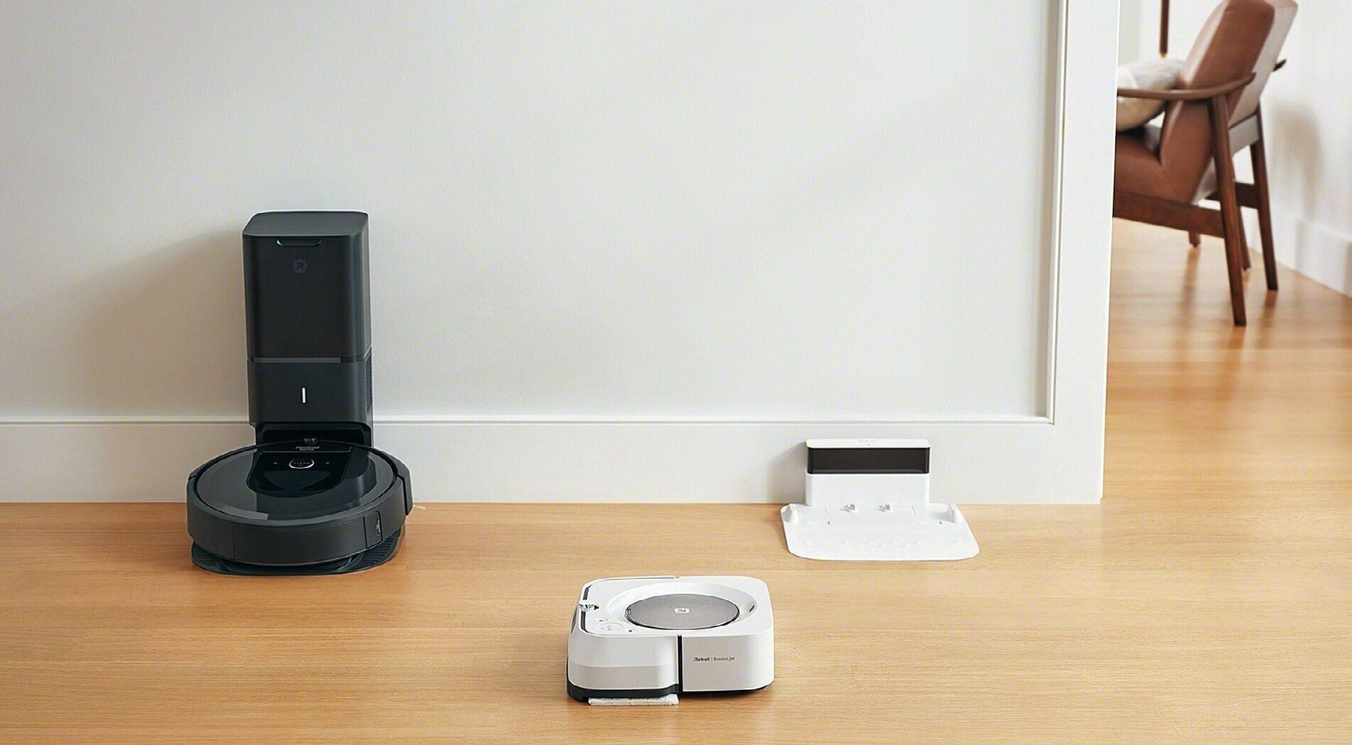 水拭きした床って気持ちいい!そんな快適なおうち時間をかなえてくれるのが床拭きロボット。ルンバと連動しておけば、ルンバ清掃後に自動で起動。掃除機がけから拭き掃除まで一貫してお任せできます。(写真右)¥76,868 /アイロボットサービスセンターTEL0120•046•669