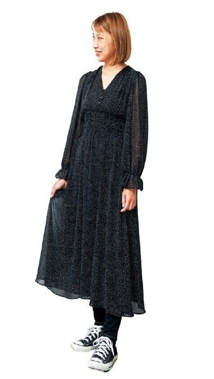 YOMIの物。細かいドット柄が大人っぽい。形もフェミニン。