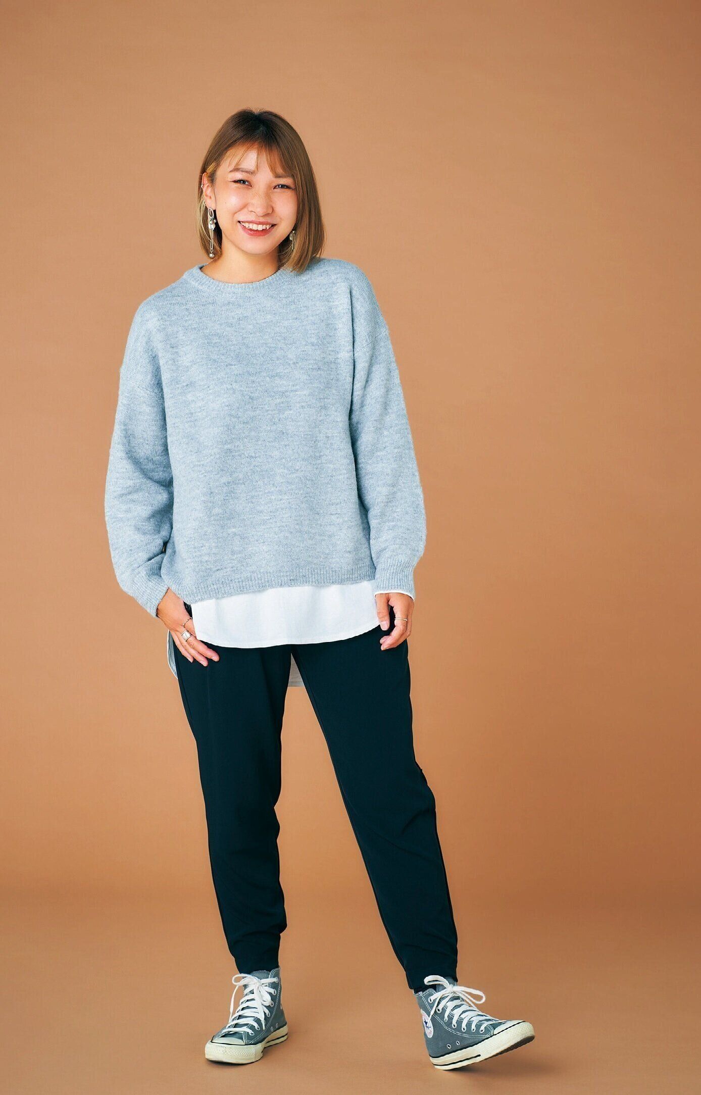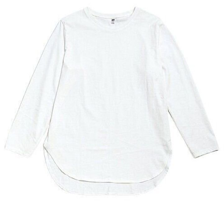 ユニクロの物。長め丈&ラウンドすそで、おしゃれなレイヤードに。